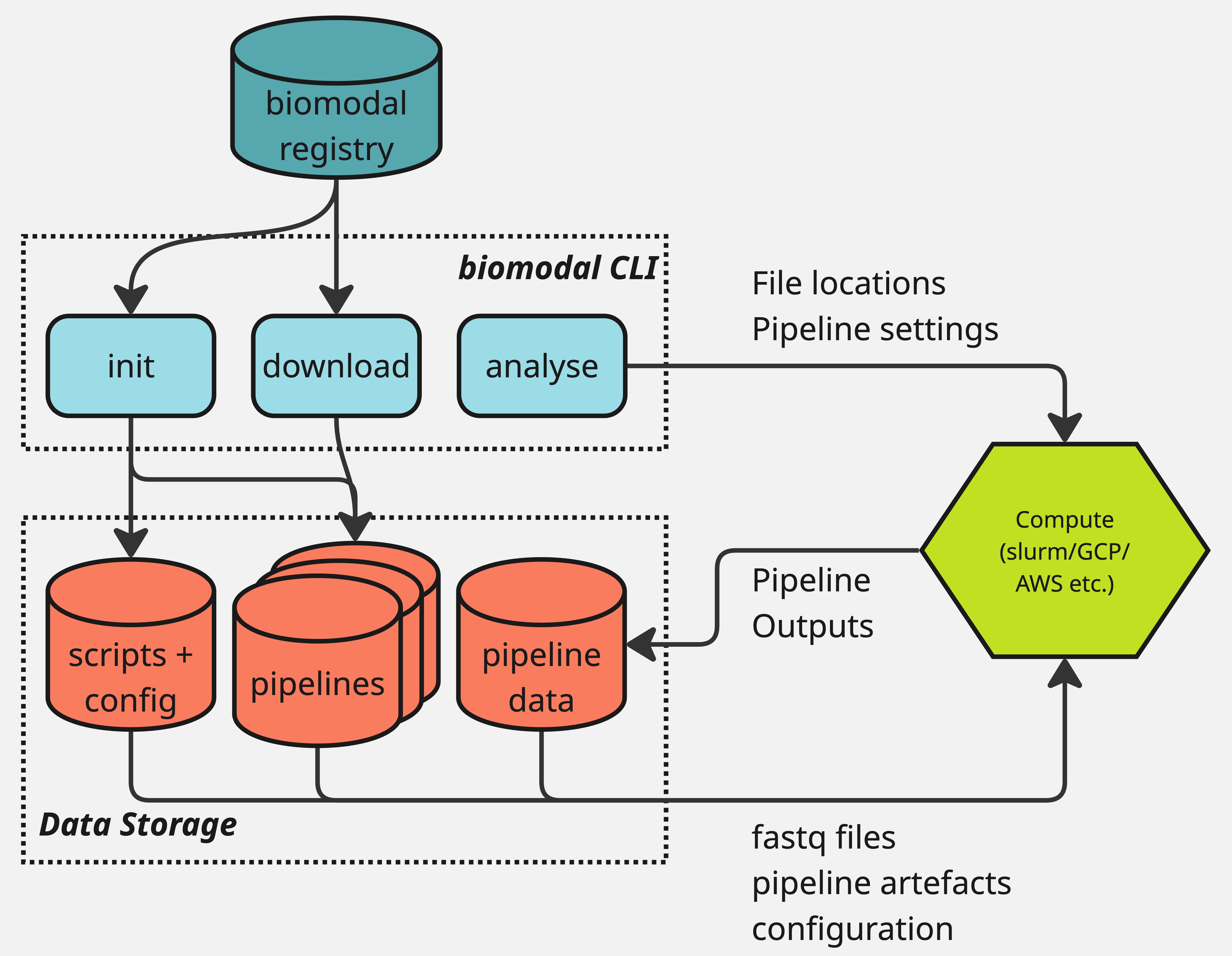 The structure of the biomodal duet pipeline and biomodal CLI is shown in this diagram: