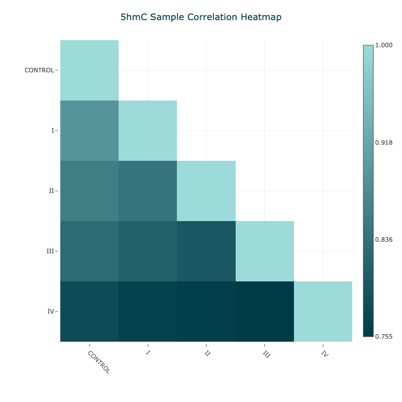 DMR results file: The DMR results file just created, focussed on the 5hmC levels in the Control and Stage I samples at the hypo-methylated promoter sites from Stage IV samples.