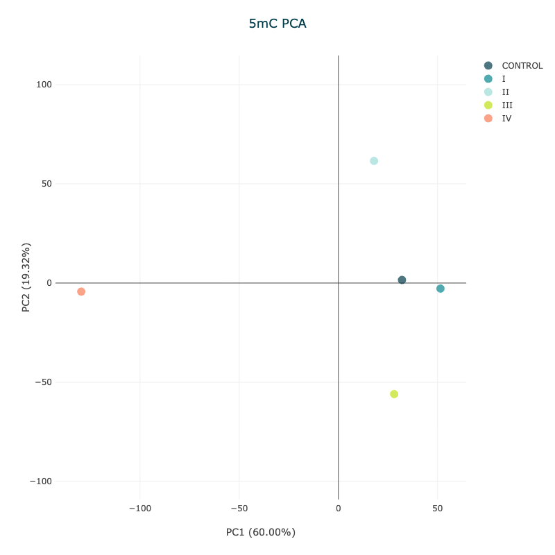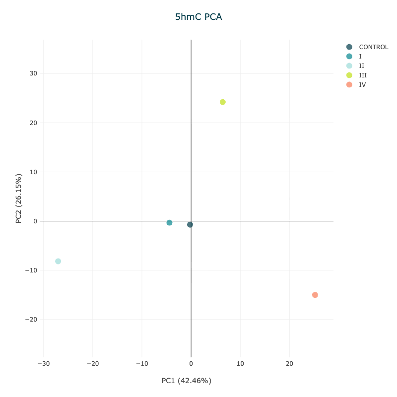 Samples cluster with expected ‘like’ samples e.g. controls, stage of disease and the feature on axis is significant in the analysis e.g. level of 5mC or 5hmC etc. and identification of outliers. |