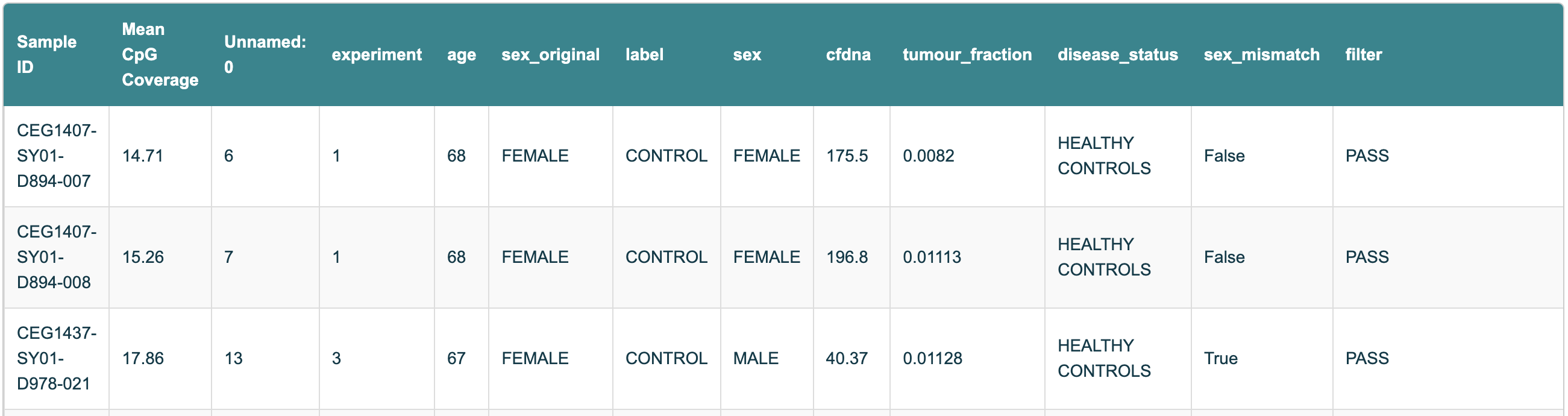 Figure 10 Snapshot of the Sample Information table from the Biological QC HTML report, showing Sample IDs and the corresponding mean CpG coverage.#