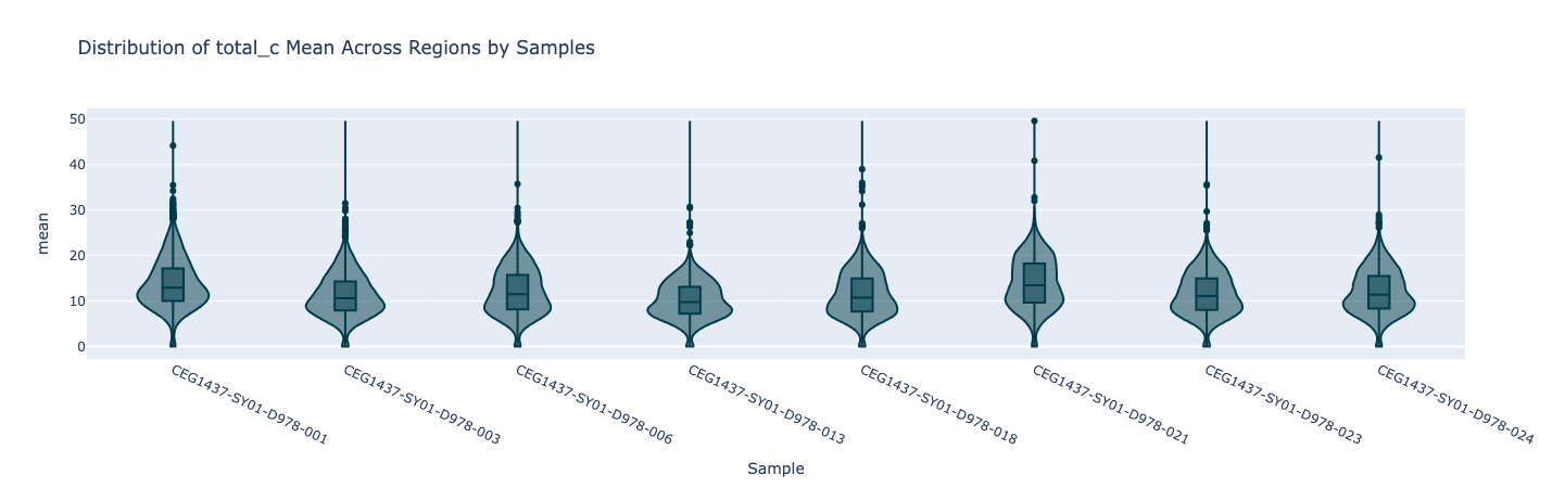 Figure 15 Violin plot showing the mean coverage of total_c per promoter region, for 8 samples.#
