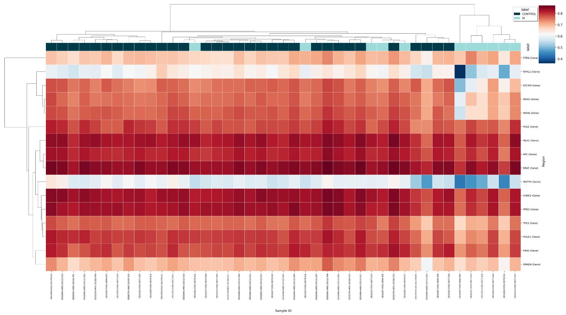 Figure 23 Regional co-methylation heatmap for 5mC enrichment in Control and Stage IV samples, for 16 gene regions implicated in CRC.#